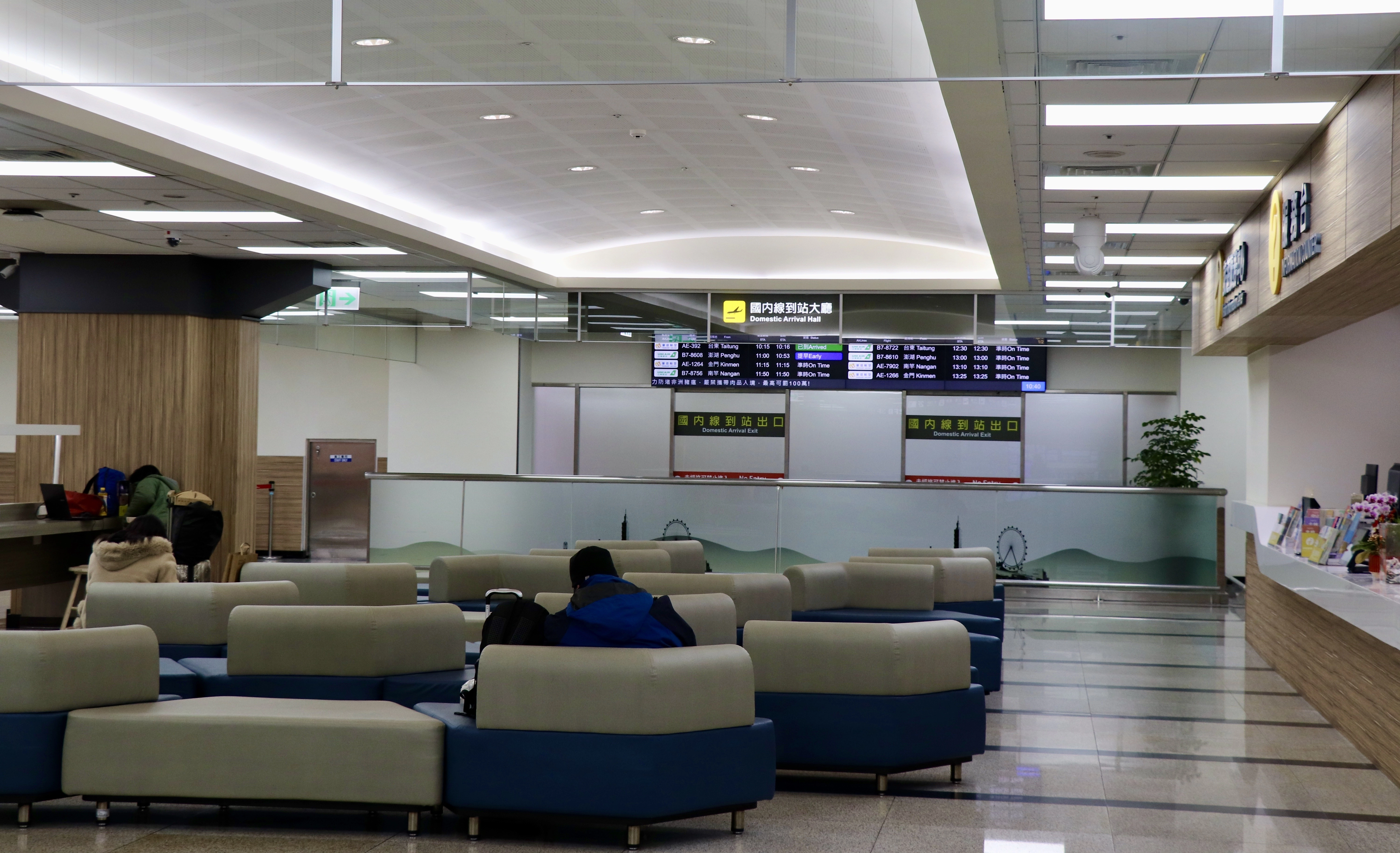 - 親友等候區: 旅客出關後,會直接進入一樓大廳。這裡設有座椅區與服務台。